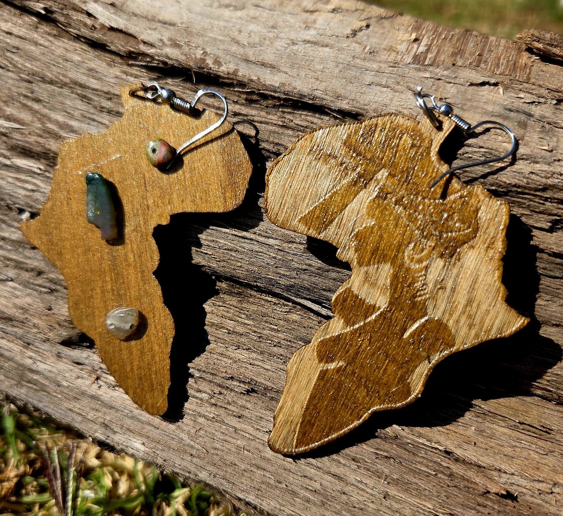 Reclaim & wear your Africa richness with pride..Beautiful map shaped earrings with different stones symbolizing the rich African minerals